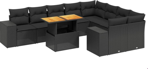 vidaXL vidaXL 10-cz. zestaw wypoczynkowy do ogrodu, poduszki czarny rattan PE
