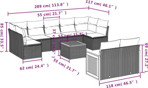 vidaXL vidaXL 10-cz. zestaw wypoczynkowy do ogrodu, poduszki czarny rattan PE