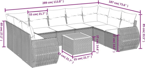vidaXL vidaXL 10-cz. zestaw wypoczynkowy do ogrodu, poduszki czarny rattan PE