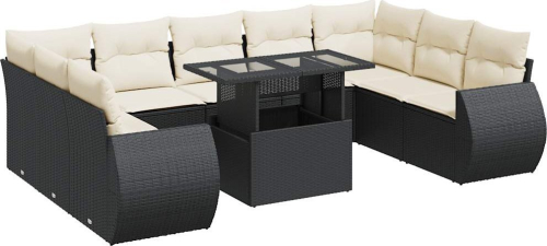 vidaXL vidaXL 10-cz. zestaw wypoczynkowy do ogrodu, z poduszkami, czarny