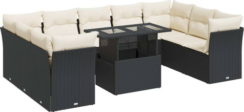 vidaXL vidaXL 10-cz. zestaw wypoczynkowy do ogrodu, z poduszkami, czarny