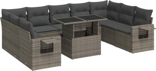 vidaXL vidaXL 10-cz. zestaw wypoczynkowy do ogrodu, z poduszkami, szary