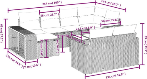 vidaXL vidaXL 11-cz. zestaw wypoczynkowy do ogrodu, poduszki czarny rattan PE