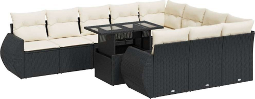 vidaXL vidaXL 11-cz. zestaw wypoczynkowy do ogrodu, poduszki czarny rattan PE