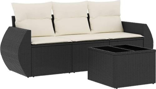 vidaXL vidaXL 4-cz. zestaw wypoczynkowy do ogrodu, poduszki, czarny rattan PE