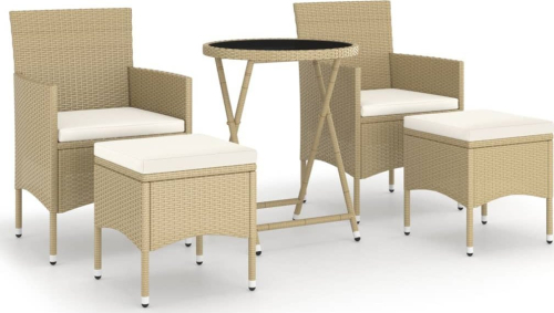 vidaXL vidaXL 5-cz. zestaw bistro do ogrodu, rattan PE i szkło hartowane, beż
