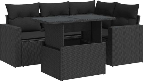 vidaXL vidaXL 5-cz. zestaw wypoczynkowy do ogrodu, poduszki, czarny rattan PE