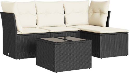 vidaXL vidaXL 5-cz. zestaw wypoczynkowy do ogrodu, poduszki, czarny rattan PE
