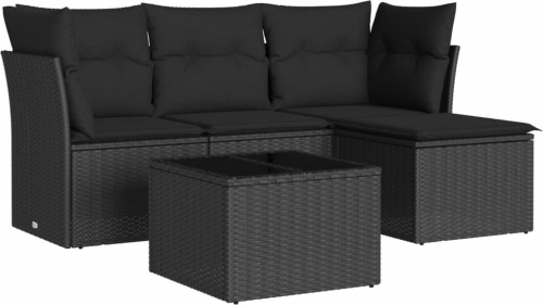 vidaXL vidaXL 5-cz. zestaw wypoczynkowy do ogrodu, poduszki, czarny rattan PE