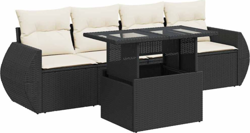 vidaXL vidaXL 5-cz. zestaw wypoczynkowy do ogrodu, poduszki, czarny rattan PE