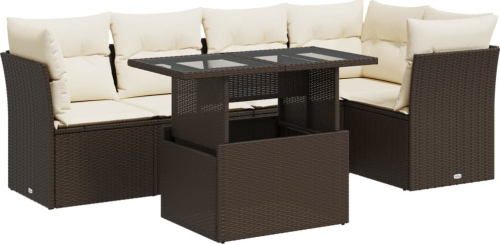 vidaXL vidaXL 6-cz. zestaw wypoczynkowy do ogrodu, z poduszkami, brązowy