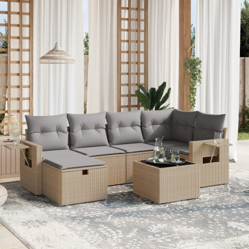 vidaXL vidaXL 7-cz. zestaw mebli ogrodowych z poduszkami, mieszany beż