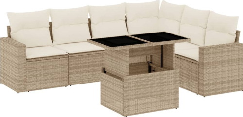 vidaXL vidaXL 7-cz. zestaw wypoczynkowy do ogrodu, z poduszkami, beżowy