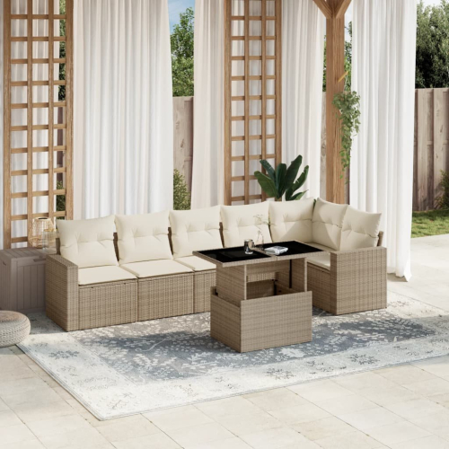 vidaXL vidaXL 7-cz. zestaw wypoczynkowy do ogrodu, z poduszkami, beżowy