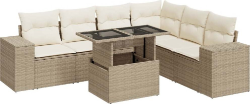 vidaXL vidaXL 7-cz. zestaw wypoczynkowy do ogrodu, z poduszkami, beżowy