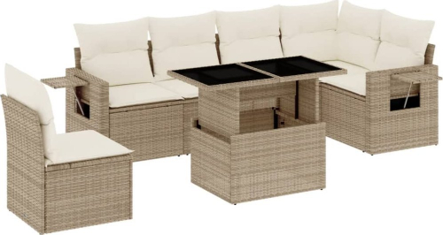 vidaXL vidaXL 7-cz. zestaw wypoczynkowy do ogrodu, z poduszkami, beżowy