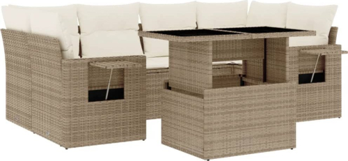 vidaXL vidaXL 7-cz. zestaw wypoczynkowy do ogrodu, z poduszkami, beżowy