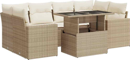 vidaXL vidaXL 7-cz. zestaw wypoczynkowy do ogrodu, z poduszkami, beżowy