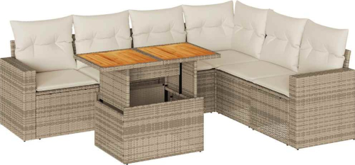 vidaXL vidaXL 7-cz. zestaw wypoczynkowy do ogrodu, z poduszkami, beżowy