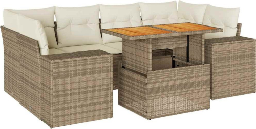 vidaXL vidaXL 7-cz. zestaw wypoczynkowy do ogrodu, z poduszkami, beżowy