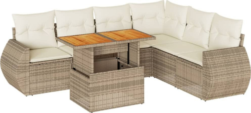 vidaXL vidaXL 7-cz. zestaw wypoczynkowy do ogrodu, z poduszkami, beżowy