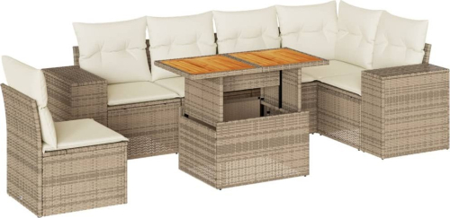 vidaXL vidaXL 7-cz. zestaw wypoczynkowy do ogrodu, z poduszkami, beżowy