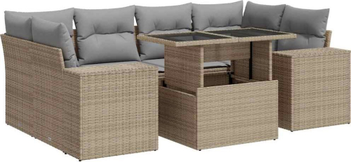 vidaXL vidaXL 7-cz. zestaw wypoczynkowy do ogrodu, z poduszkami, beżowy