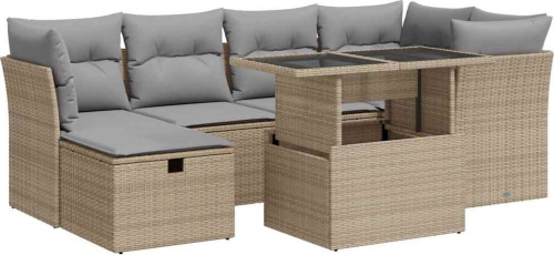 vidaXL vidaXL 7-cz. zestaw wypoczynkowy do ogrodu, z poduszkami, beżowy