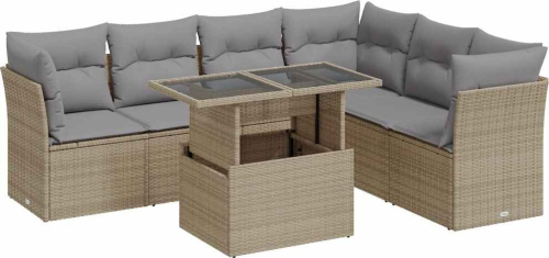 vidaXL vidaXL 7-cz. zestaw wypoczynkowy do ogrodu, z poduszkami, beżowy