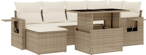 vidaXL vidaXL 7-cz. zestaw wypoczynkowy do ogrodu, z poduszkami, beżowy