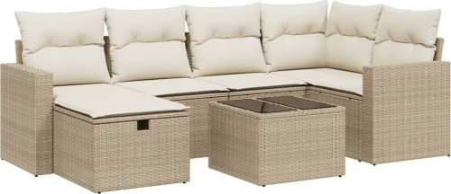 vidaXL vidaXL 7-cz. zestaw wypoczynkowy do ogrodu, z poduszkami, beżowy