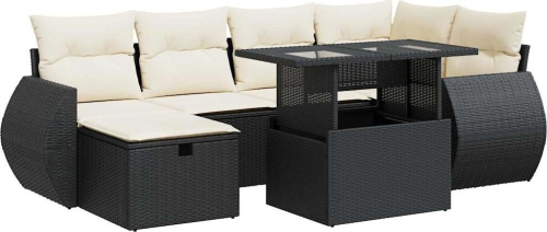 vidaXL vidaXL 7-cz. zestaw wypoczynkowy do ogrodu, z poduszkami, czarny
