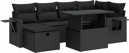 vidaXL vidaXL 7-cz. zestaw wypoczynkowy do ogrodu, z poduszkami, czarny