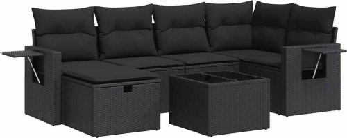 vidaXL vidaXL 7-cz. zestaw wypoczynkowy do ogrodu, z poduszkami, czarny