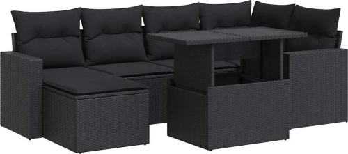 vidaXL vidaXL 7-cz. zestaw wypoczynkowy do ogrodu, z poduszkami, czarny