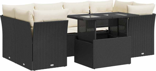 vidaXL vidaXL 7-cz. zestaw wypoczynkowy do ogrodu, z poduszkami, czarny