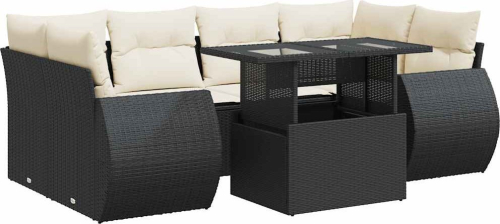 vidaXL vidaXL 7-cz. zestaw wypoczynkowy do ogrodu, z poduszkami, czarny