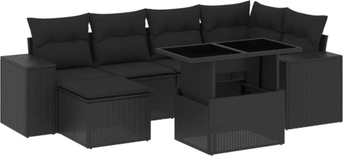 vidaXL vidaXL 7-cz. zestaw wypoczynkowy do ogrodu, z poduszkami, czarny