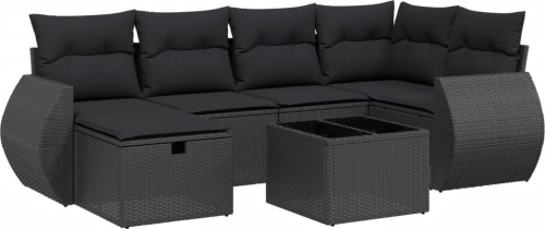 vidaXL vidaXL 7-cz. zestaw wypoczynkowy do ogrodu, z poduszkami, czarny