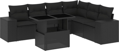 vidaXL vidaXL 7-cz. zestaw wypoczynkowy do ogrodu, z poduszkami, czarny