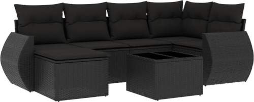 vidaXL vidaXL 7-cz. zestaw wypoczynkowy do ogrodu, z poduszkami, czarny