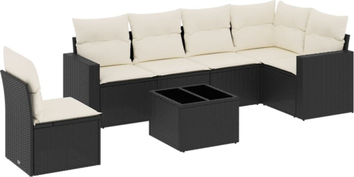 vidaXL vidaXL 7-cz. zestaw wypoczynkowy do ogrodu, z poduszkami, czarny