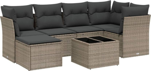vidaXL vidaXL 7-cz. zestaw wypoczynkowy do ogrodu, z poduszkami, jasnoszary