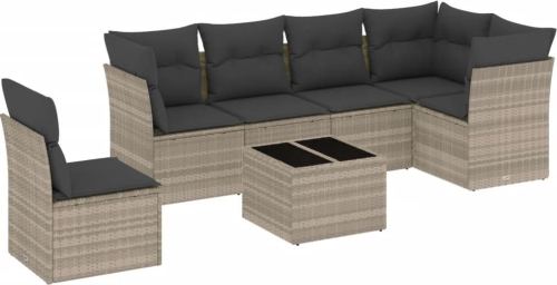 vidaXL vidaXL 7-cz. zestaw wypoczynkowy do ogrodu, z poduszkami, jasnoszary