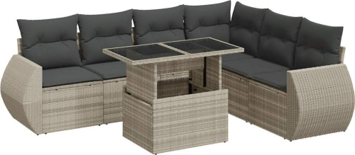 vidaXL vidaXL 7-cz. zestaw wypoczynkowy do ogrodu, z poduszkami, jasnoszary