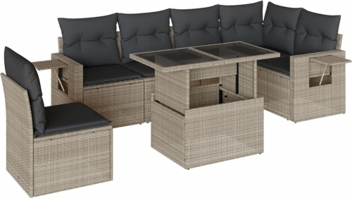 vidaXL vidaXL 7-cz. zestaw wypoczynkowy do ogrodu, z poduszkami, jasnoszary