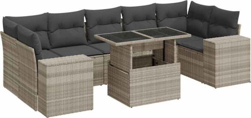 vidaXL vidaXL 8-cz. zestaw mebli ogrodowych, poduszki, jasnoszary polirattan