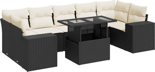 vidaXL vidaXL 8-cz. zestaw wypoczynkowy do ogrodu, z poduszkami, czarny
