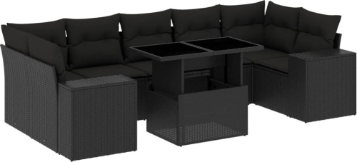 vidaXL vidaXL 8-cz. zestaw wypoczynkowy do ogrodu, z poduszkami, czarny