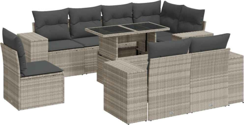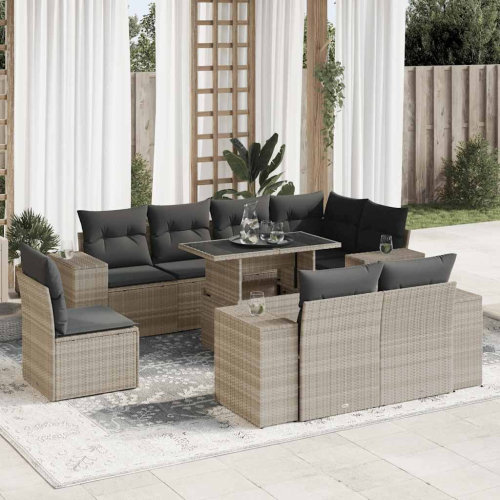 vidaXL vidaXL 9-cz. zestaw mebli ogrodowych, poduszki, jasnoszary polirattan